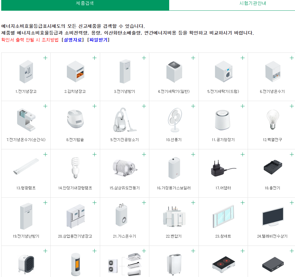 이 사이트에서는 제품의 모델명만 입력하면, 그 제품이 어떤 효율등급인지 확인할 수 있어요.