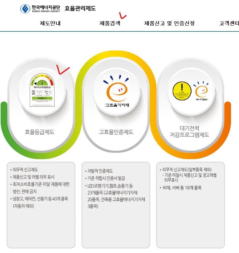 - 한국에너지공단 사이트에서 모델명으로 간편 확인