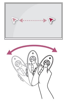 매직 리모컨을 좌우로 흔들거나 휠을 돌리면 포인터가 나타납니다. 포인터를 일정 시간 사용하지 않거나 리모컨을 평평한 곳에 놓으면 포인터가 사라집니다.